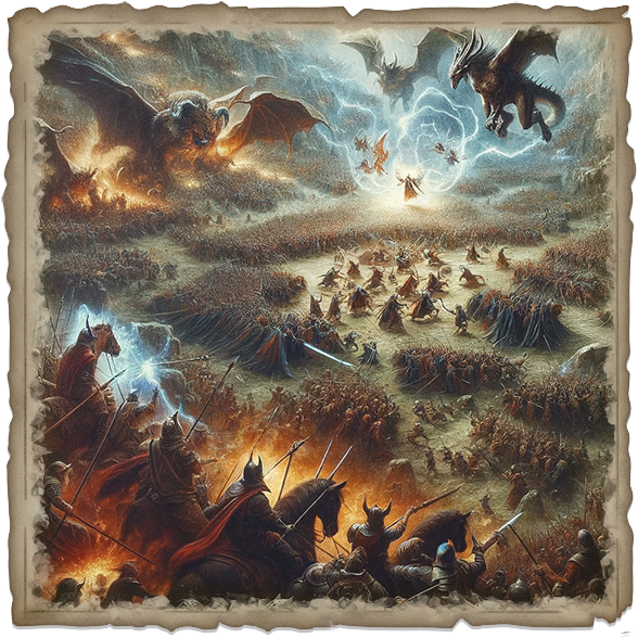 Thus, the Second Age of Embergrave became an epoch of unrelenting conflict, a dark period where the once unchallenged god-kings found themselves locked in a desperate struggle against the divine might of the Inevitables. Heroes of this age emerged from the chaos, their stories woven into the fabric of the era. They faced the dual threats of divine wrath and the overreaching ambitions of mortals who had ascended to near-godhood, their tales becoming legends of resilience and valor in the face of overwhelming power.
